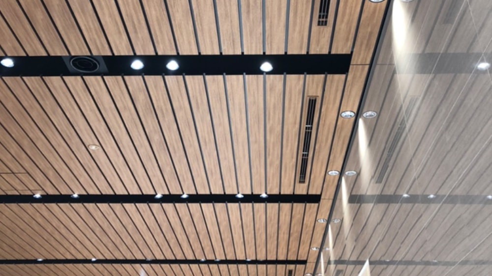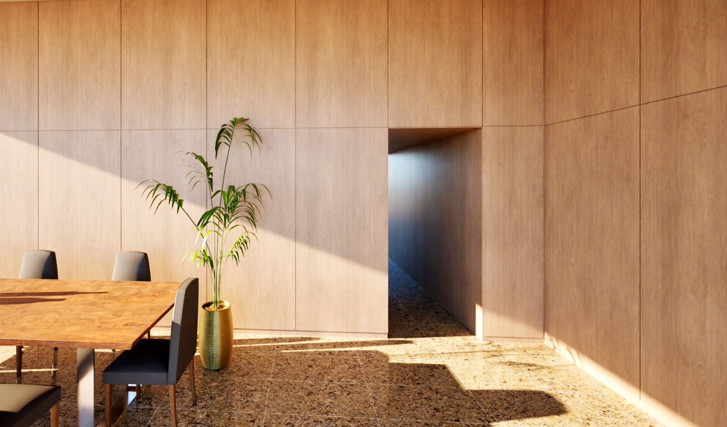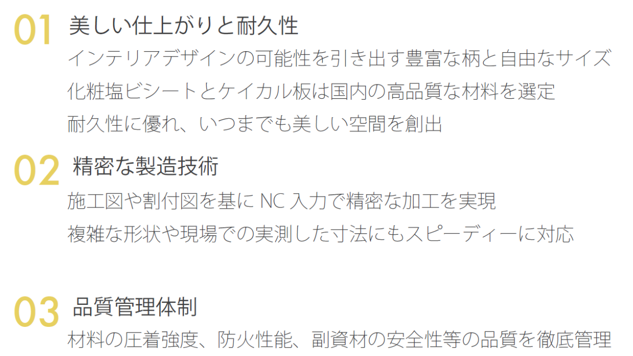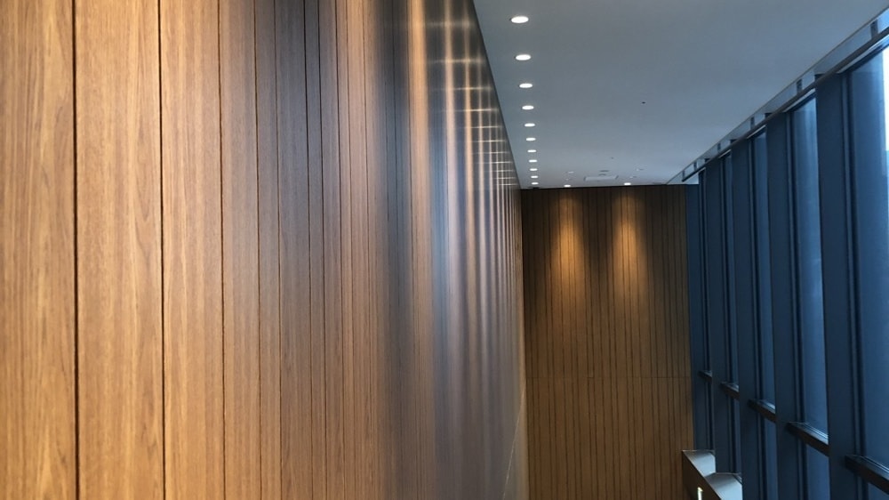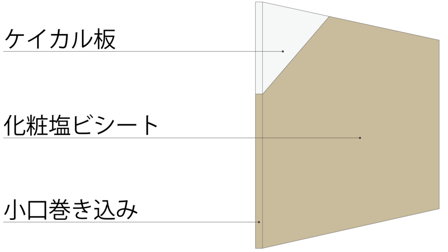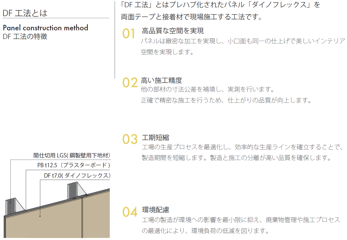 ダイノフレックスは基板の小口まで特殊化粧フィルムを巻き込んで仕上げた内装パネル